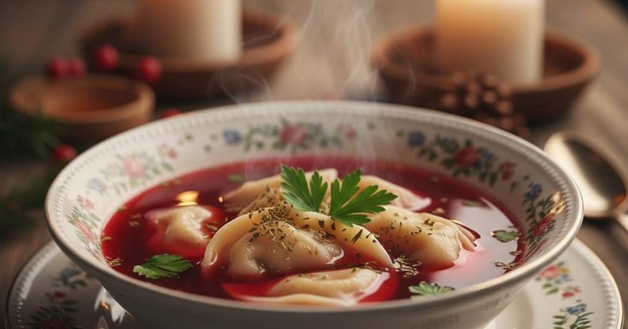 Der Barszcz Czerwony ist eine klare, tiefrote Suppe, die ihre Farbe und ihren unverwechselbaren Geschmack der Roten Bete und der traditionellen, langsamen Zubereitung verdankt. Die Zugabe von Pilzkochwasser und ein Spritzer Zitrone am Ende verleihen ihm die ideale Balance zwischen Süße und Säure. Es ist ein Gericht, das Wärme und Feierlichkeit in die polnische Weihnacht bringt.